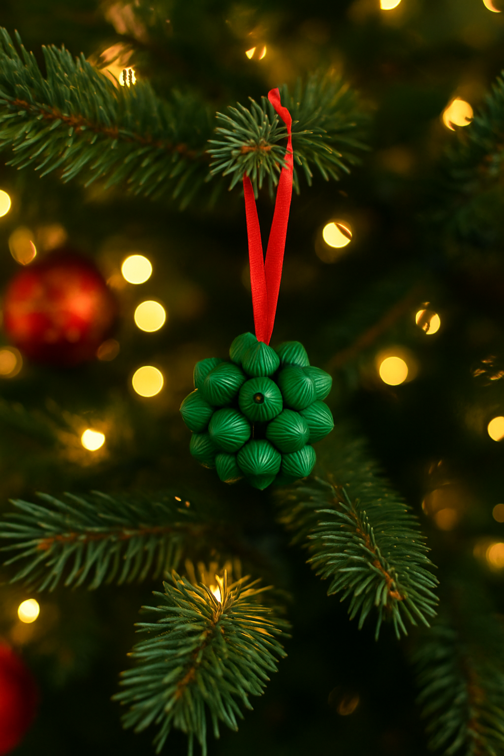 Cereal Box Bead Popcorn Ornament- Holly Green