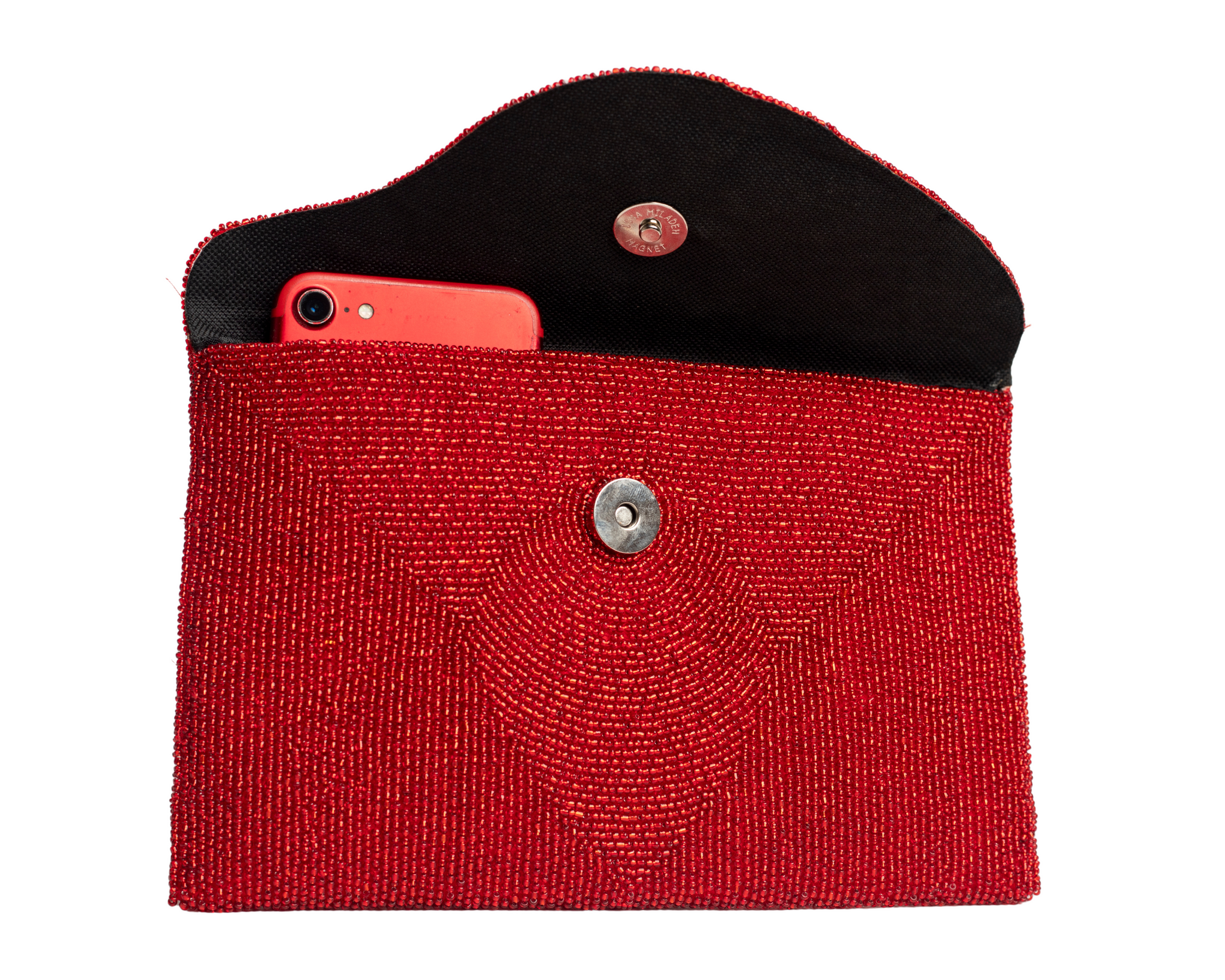 Red Handmade Haitian Women Envelop Clutch Purse Made of Beads