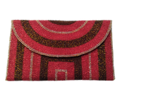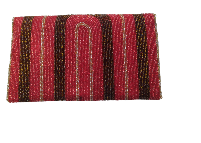 Red Handmade Women Clutch Purse Made of Beads With Triangle Cover