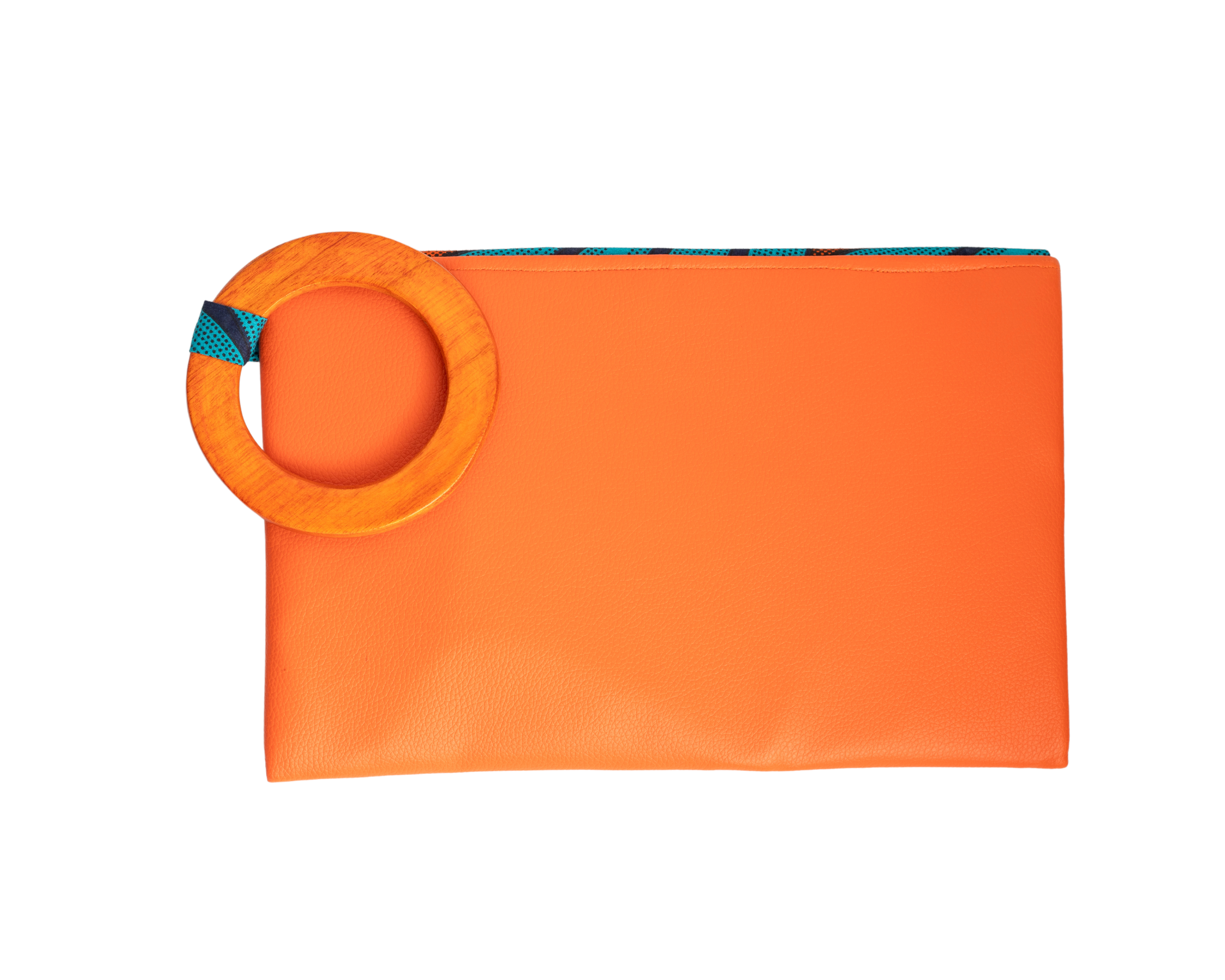 Orange and green Handmade Women Clutch Purse Leather Envelop