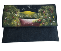 Blue Handmade Women Clutch Purse with Flower Bed Paint